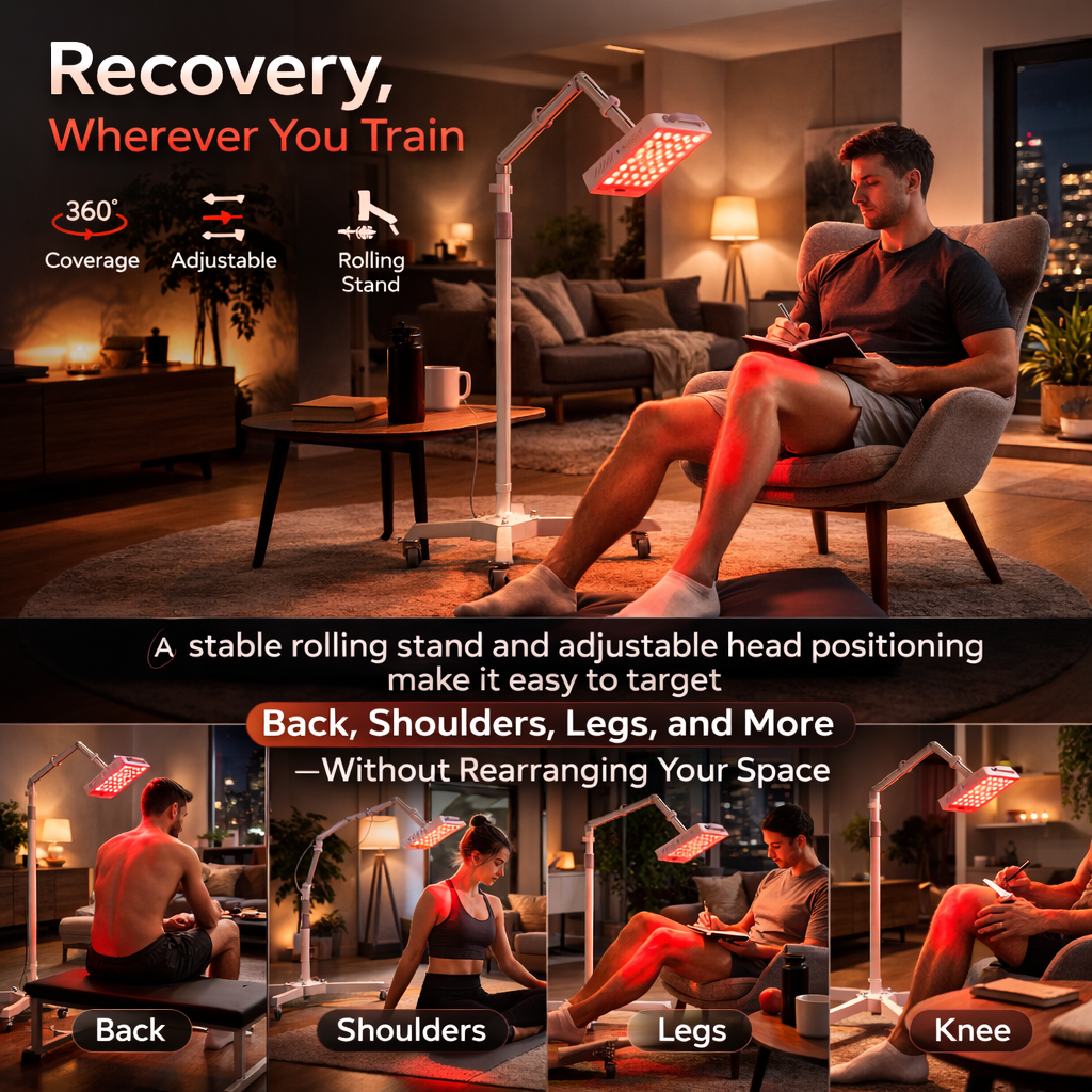 Your body repairs through cellular energy and circulation. Light supports that recovery loop—so your routine stays consistent.